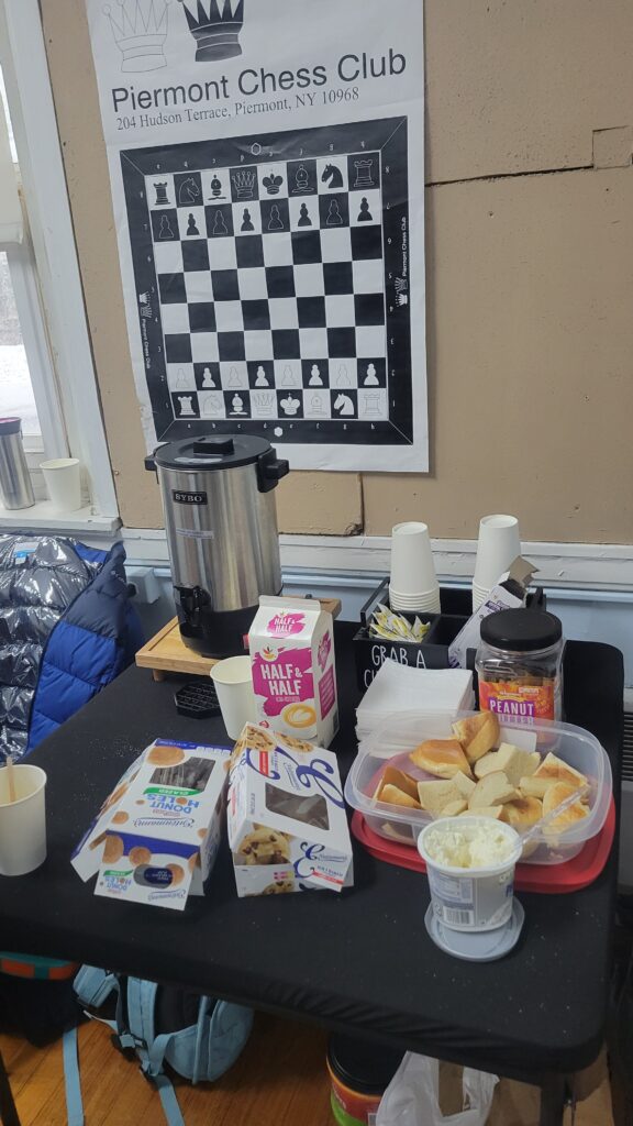Though still small by chess tournament standards, it was another milestone for Piermont. 32 players from all over the tri-state area signed up. Many new faces, and many familiar, including the 2025 Blitz Champ NM Ian Dudley, and 3rd place winner Ari Drucker. A fantastic and diverse range of players gathered to play chess on a quiet, snowy day.