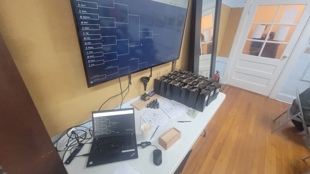 The Qualifier stage began around 11:30am. 5 rounds of G/3+2 blitz chess, (instead of 5+3) which made for a more predictable run time of ~4 hrs.