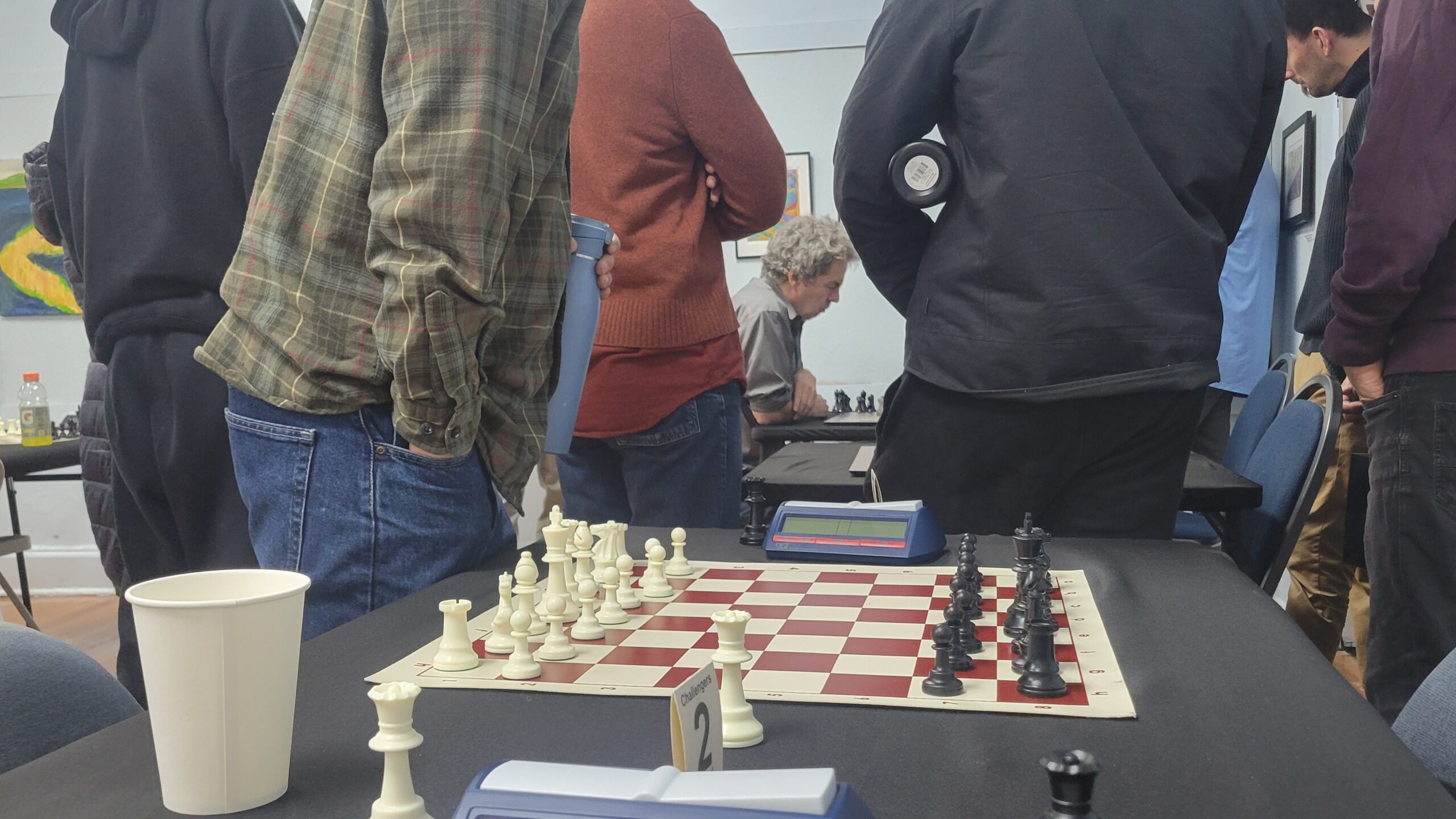 The top 16 would go on to compete in a double elimination Championship bracket, and the bottom 16 would compete in a Challengers bracket. This way everyone had a chance at a prize and everyone would get at least two hours and 7 games of chess. A nice change from the previous year.